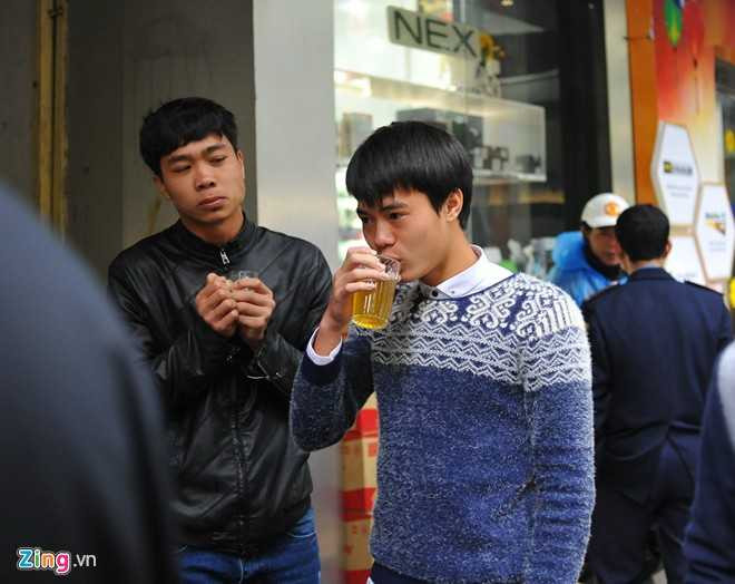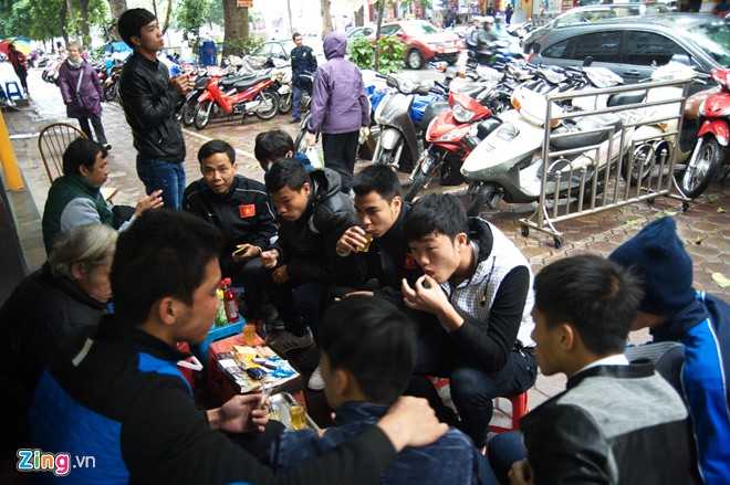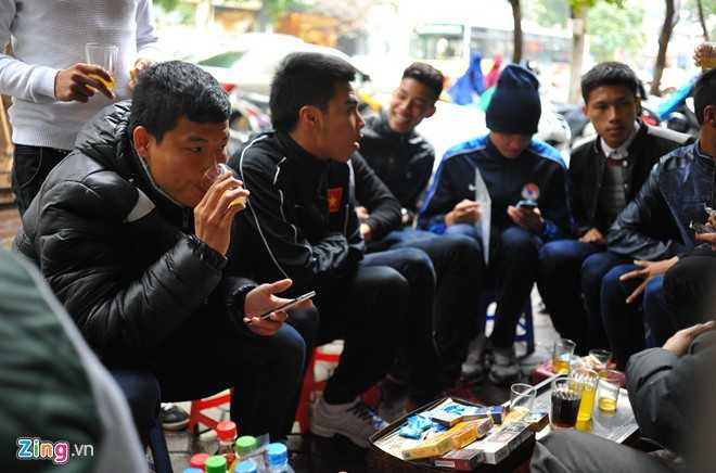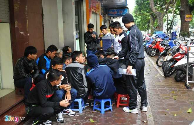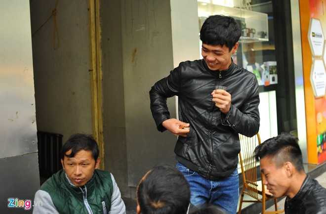 Trái với cà phê ở phố núi Pleiku hay Sài Gòn nhộn nhịp nóng bức quanh năm, trà nóng vỉa hè là nét đặc trưng của mùa đông Hà Nội. Sau khi hoàn thành thủ tục visa, các cầu thủ U19 Việt Nam cùng nhau ghé vào một quán trà bên đường Hai Bà Trưng.