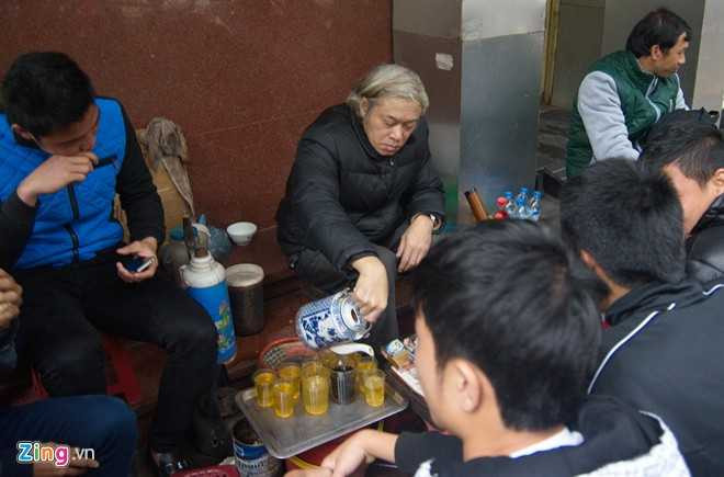Xuân Trường nhâm nhi chén trà nóng để bớt đi cái lạnh giá của tiết trời Hà Nội.