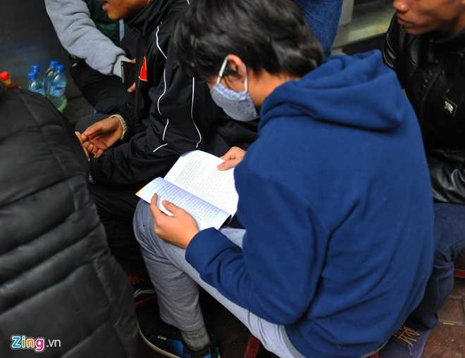 Trong khi các đồng đội đang nói chuyện vui đùa thì Tuấn Anh chăm chú đọc sách.