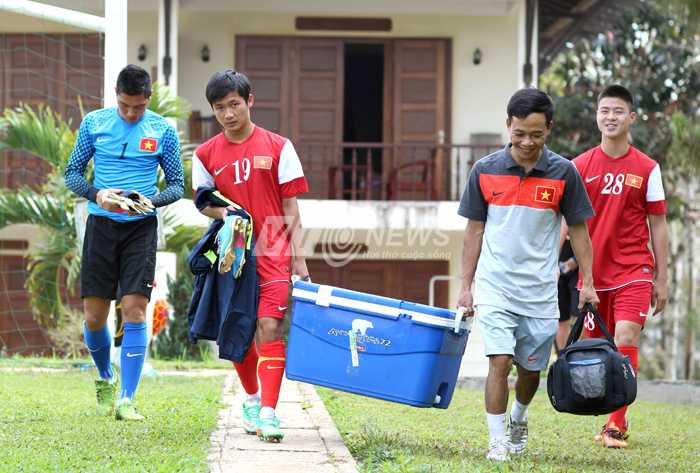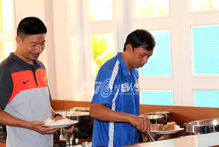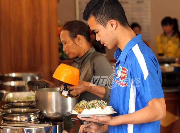 Đến giờ ăn. Trong ảnh là tiền vệ cánh phải Thanh Tùng.
