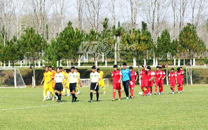 U19 Việt Nam đá tập cùng CLB Đắk Lắk. Trong ảnh, hai đội cùng ra sân.