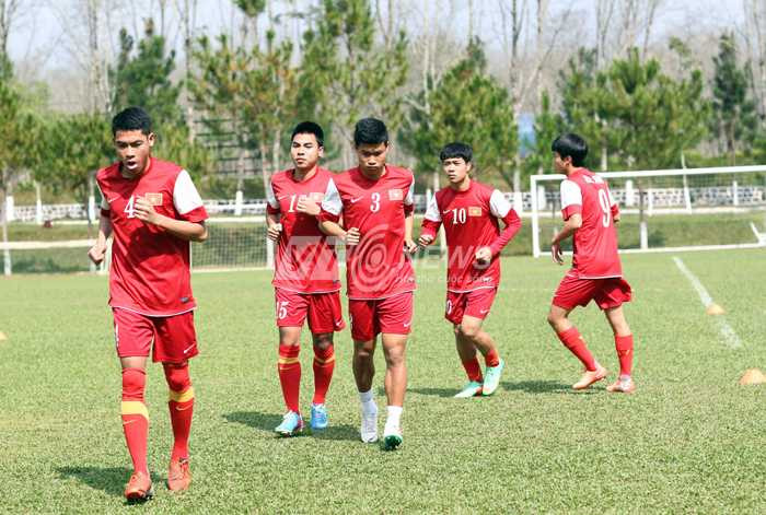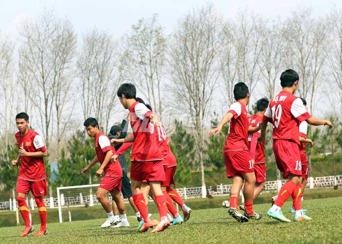 U19 Việt Nam khởi động trước trận đấu tập với CLB Hạng Nhất Đắk Lắk.