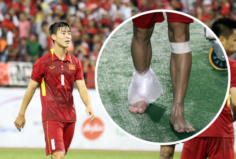 Đây là chấn thương của Duy Mạnh. (Ảnh: Hà Thành)
