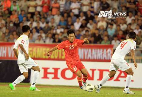 | Hoàng Thiên đang đá hộ công rất hiệu quả (Ảnh: Quang Minh) |