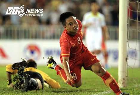 | Hoàng Danh Ngọc mở tỷ số cho U23 Việt Nam (Ảnh: Quang Minh) |