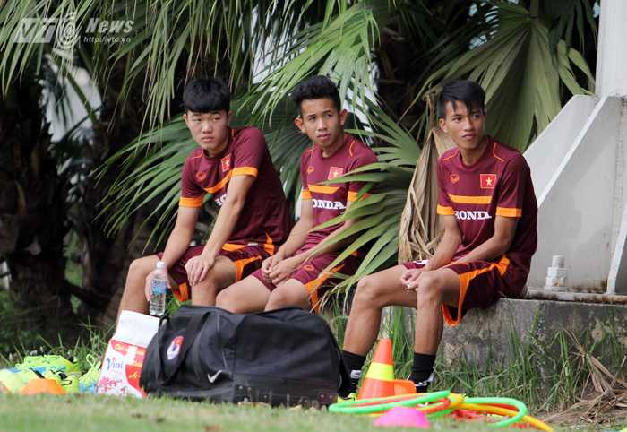 | Xuân Trường, Hồng Duy, Ngọc Thắng ngồi ngoài sân vì chấn thương (Ảnh: Hà Thành) |