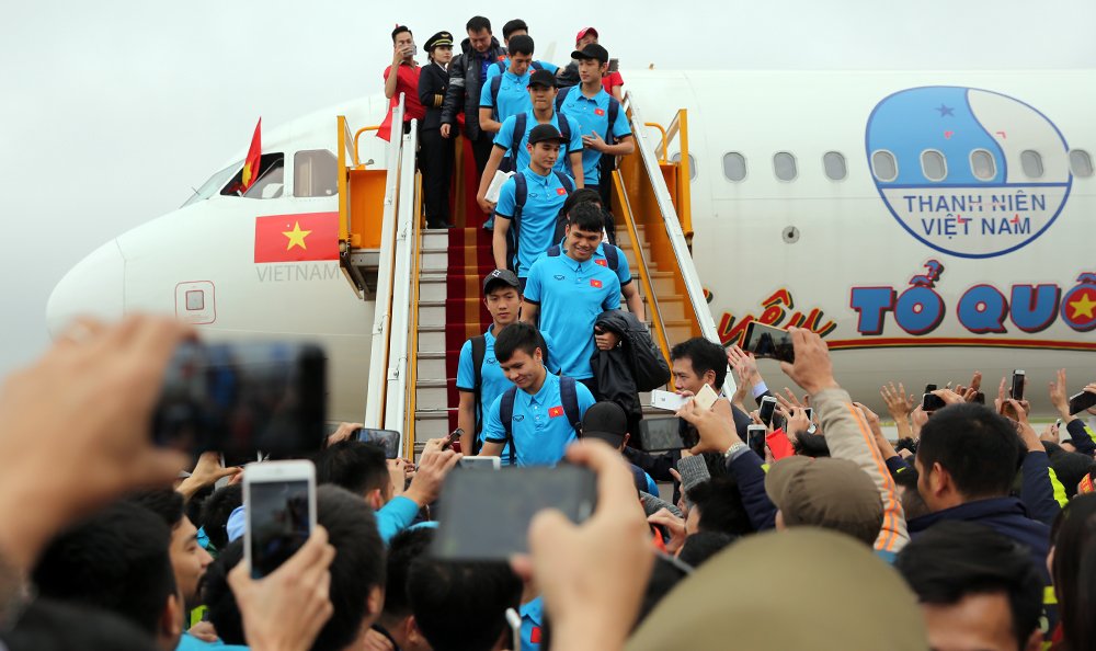 U23 Việt Nam hạ cánh xuống Nội Bài trong vòng tay người hâm mộ