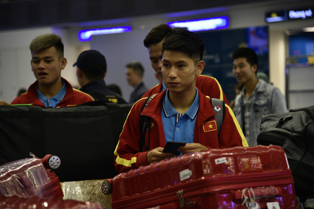 U22 Việt Nam ra sân bay lúc nửa đêm.