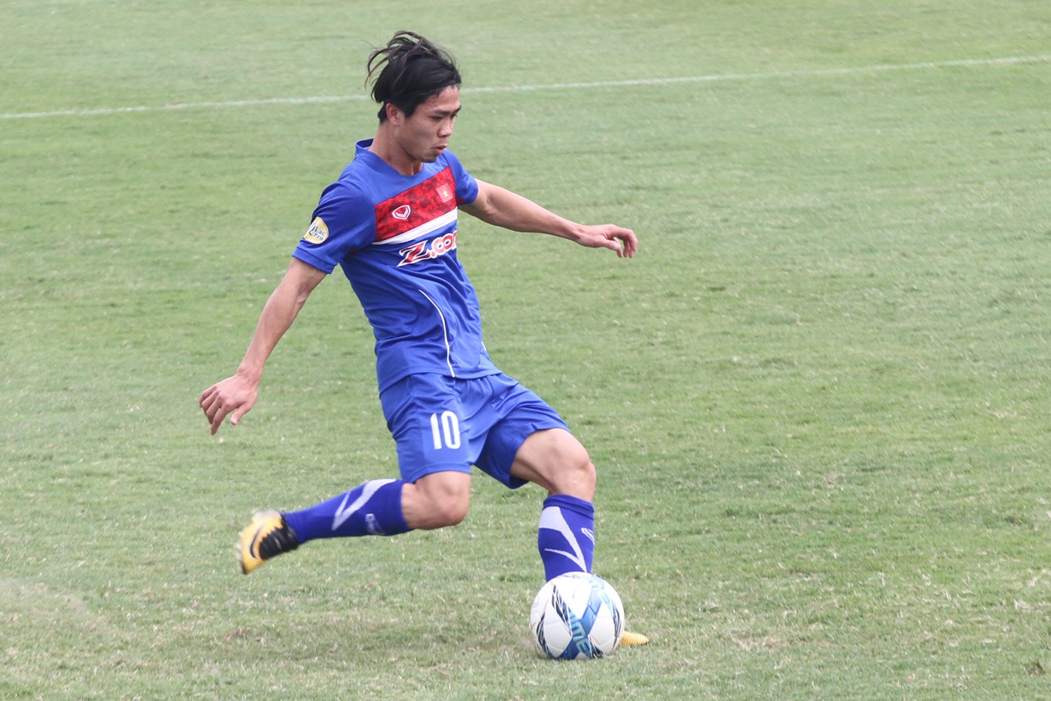 Anh được tung vào sân trong hiệp 2, thi đấu bên cạnh Văn Toàn và Phan Văn Long trên hàng công của đội xanh.