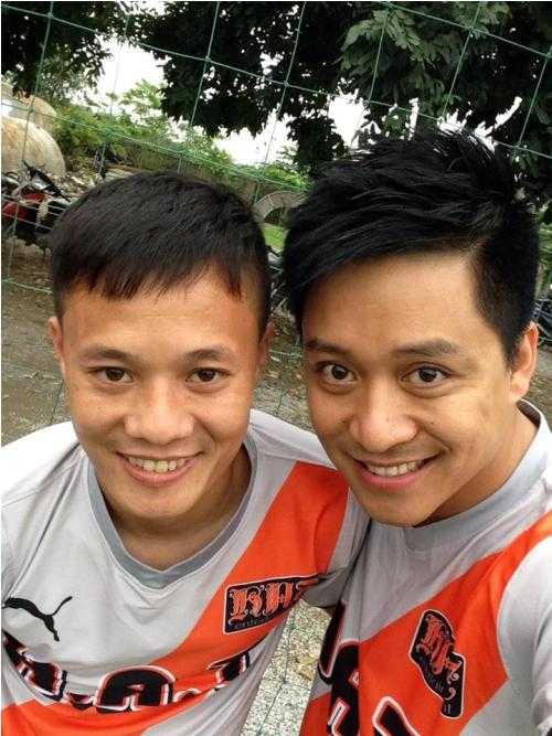 | Tuấn Hưng cùng tuyển thủ Thành Lương trong màu áo HAT. |