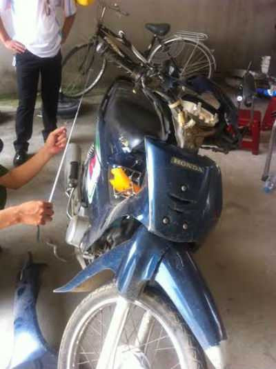 Mặc dù hết sức lo lắng về tình trạng sức khoẻ của chồng, nhưng chị vẫn kịp quan sát thấy chiếc xe máy của chồng chị đã nằm trên xe chuyên dụng của lực lượng công an trong tình trạng hư hỏng nặng và đèn xi nhan vẫn đang bật. Trong khi đó, lực lượng chức năng chưa hề kẻ vẽ hiện trường và cũng không mời người nhà nạn nhân ở lại để làm việc.