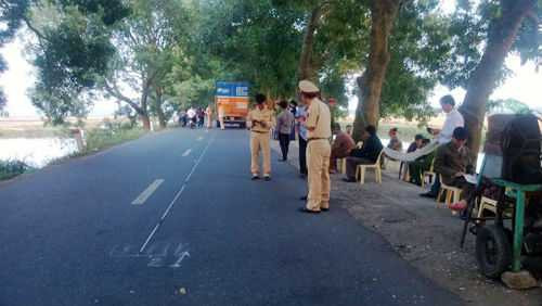 | Công an huyện Thường Tín dựng lại hiện trường vụ tai nạn hôm 4/11/2014. |