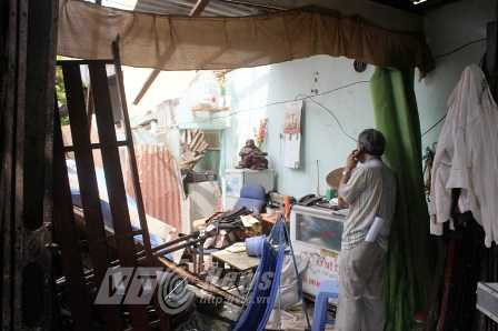 Ghi nhận của PV VTC News hiện trường căn nhà với tổng diện tích 50m2 tan hoang, toàn bộ bức tường căn nhà bị đổ sập, tài sản của gia đình nạn nhân bị vùi lấp dưới đống gạch đổ nát.