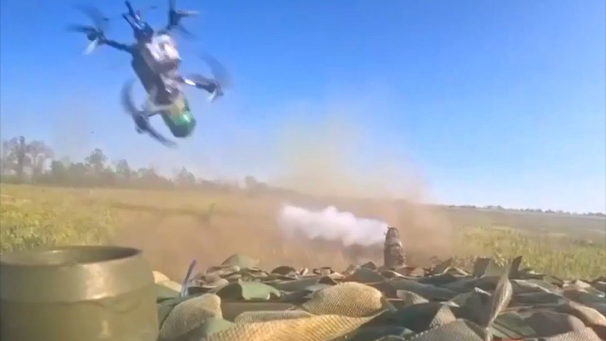 Trong đoạn video quay hai chiếc máy bay không người lái tấn công chiếc xe tăng của Nga, chiếc đầu tiên lao vào tấm lưới tháp pháo của xe tăng, nhưng đầu đạn không phát nổ và chiếc máy bay vỡ tan sau đó rơi ra từng mảnh.