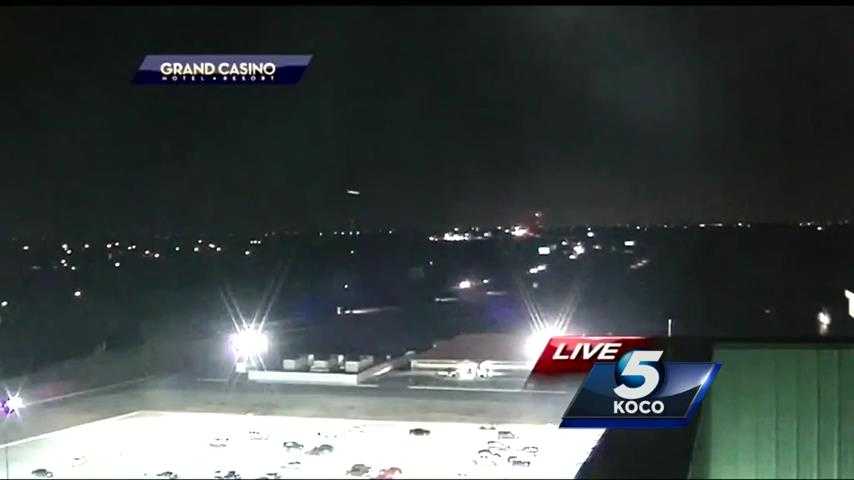 Camera cho thấy ánh sáng bí ẩn ở trên tầng thượng tòa nhà Grand Casino ở Shawnee, phía nam thành phố Oklahoma.