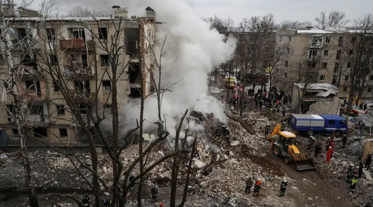 Hình ảnh lực lượng cứu hộ làm việc tại địa điểm một tòa nhà dân cư bị hư hại nặng nề trong cuộc tấn công tên lửa của Nga. (Ảnh: Reuters)