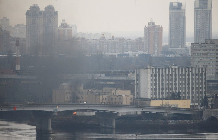 Khói bốc lên từ gần trụ sở Bộ Quốc phòng Ukraine ở Kiev. (Ảnh: Reuters)