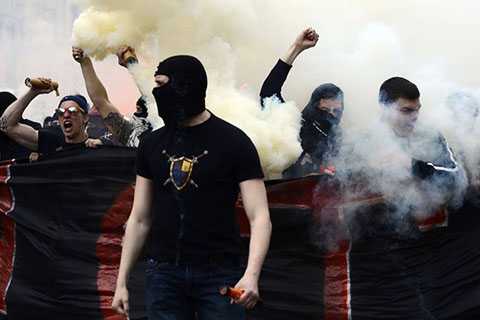 Trước đó, các CĐV này đã nhập nhóm với gần 300 người ủng hộ chính quyền Kiev ở Quảng trường Hiến pháp. Họ biểu tình đòi duy trì một Ukraine thống nhất.