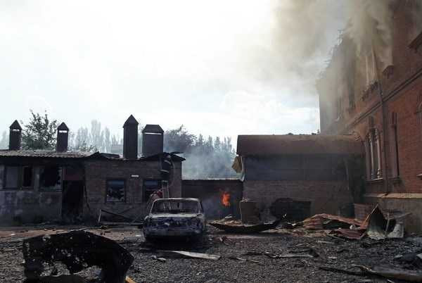 | Hiện trường đổ nát sau các vụ xung đột giữa người biểu tình và quân đội Ukraine tại Slavyansk, đông nam Ukraine |