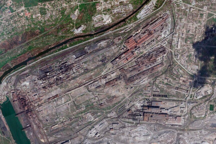 Ảnh vệ tinh nhà máy Azovstal ngày 27/4. (Ảnh: AP)