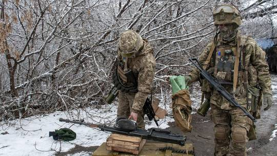 Hình ảnh binh lính Ukraine bên ngoài thành phố Kharkov hôm 26/2. (Ảnh: AP)