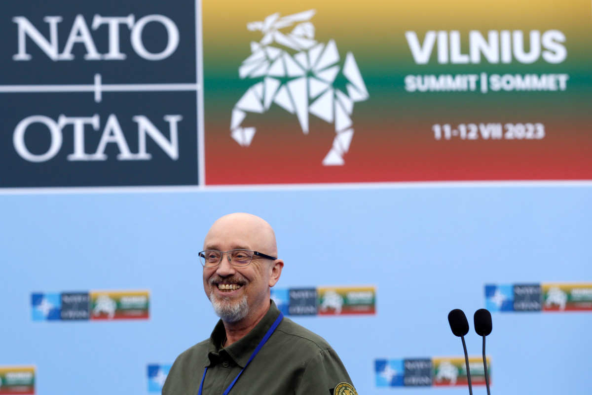 Bộ trưởng Quốc phòng Ukraine Aleksey Reznikov tại hội nghị thượng đỉnh NATO ở Latvia hồi giữa tháng 7. (Ảnh: AP)