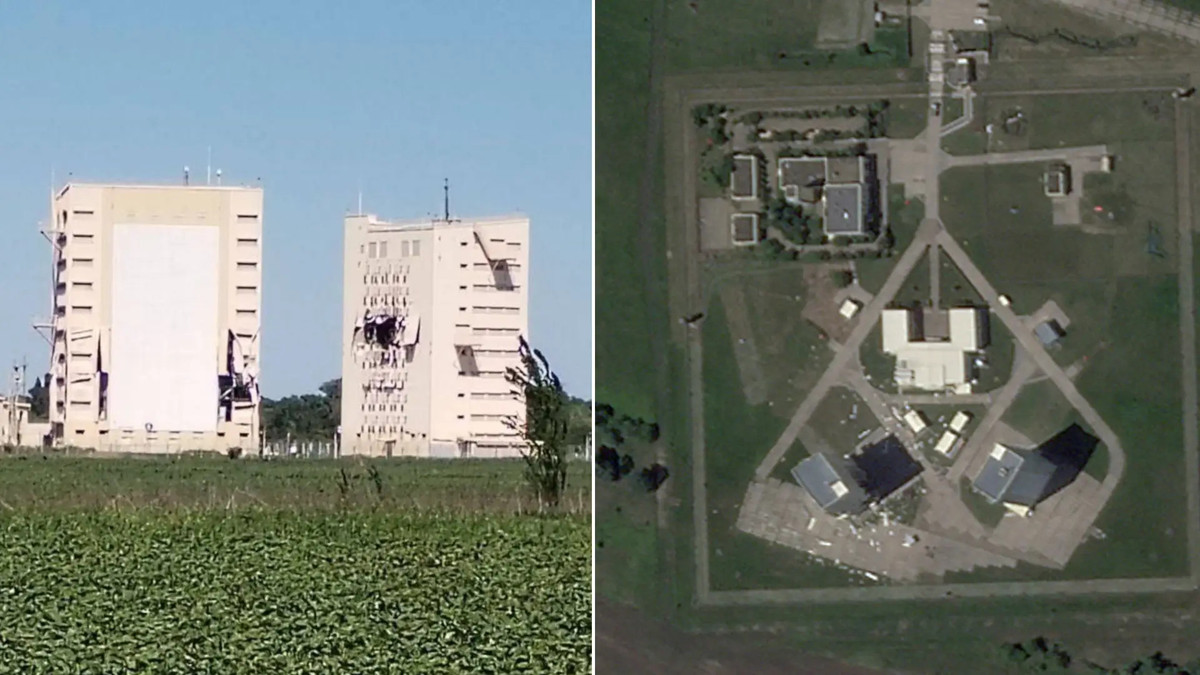 Hình ảnh hư hại của đài radar Voronezh-DM sau vụ tấn công vào đầu tuần này. (Ảnh: PLANET LABS)