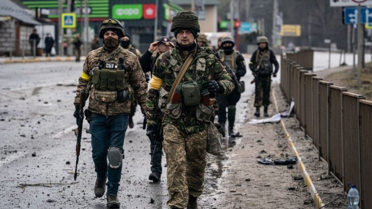 Quân đội Ukraine ở gần thị trấn Irpin ngày 3/3/2022. (Ảnh: Getty)
