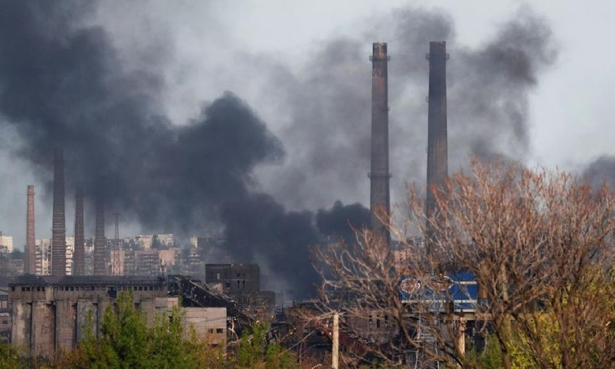 Khói đen bốc lên tại nhà máy thép Azovstal, thành phố Mariupol, phía nam Ukraine, ngày 2/5. (Ảnh: Reuters)