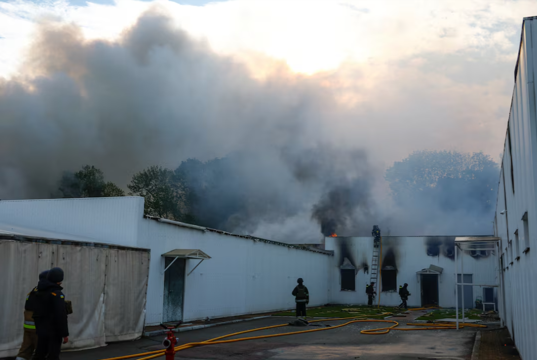 Lính cứu hỏa có mặt tại khu vực bị máy bay không người lái của Nga tấn công ngày 18/5. (Ảnh: Reuters)