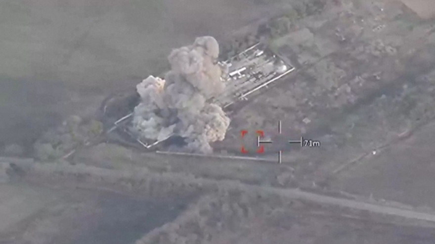 Ukraine công bố video ghi lại cảnh sân bay được Nga sử dụng cho mục đích quân sự ở tỉnh Kherson bị tấn công bằng bom thông minh.