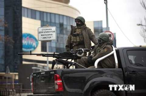 | Lực lượng ly khai gác tại một vị trí ở thành phố Donetsk, miền đông Ukraine ngày 17/11 |