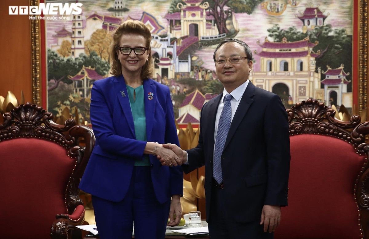 Sáng 18/5, tại trụ sở Đài Tiếng nói Việt Nam (VOV), Tổng Giám đốc VOV Đỗ Tiến Sỹ tiếp bà Caitlin Wiesen - Quyền Điều phối viên thường trú của Liên hợp quốc tại Việt Nam, Trưởng Đại diện thường trú Chương trình Phát triển của Liên hợp quốc (UNDP) tại Việt Nam.