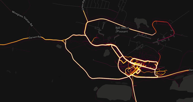 Ở các nơi như Afghanistan, Djibouti và Syria, người dùng Strava dường như đều là những người thuộc quân đội nước ngoài, tức là các căn cứ này sẽ sáng nổi bật trên bản đồ nhiệt. Ví dụ, tại Helmand, Afghanistan, các vị trí của căn cứ đang hoạt động là có thể thấy rõ, phát sáng trên bản đồ đen.