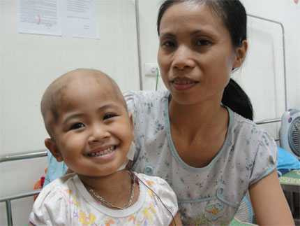 Cháu được đưa đi khám, bác sĩ cho tiêm kháng sinh nhưng hạch không rút. Sau đó, cháu được chuyển đến viện Huyết học và Truyền máu TW. Khi xét nghiệm máu, chọc tủy kiểm tra, bác sĩ cho biết cháu mắc bệnh bạch cầu cấp.
