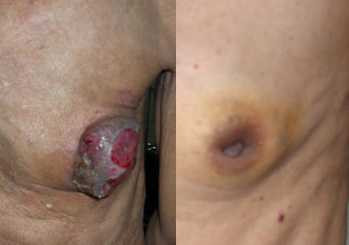 Tuy nhiên, Mark mới chỉ tuổi 41 và không có tiền sử ung thư trong gia đình. Mặc dù không có các triệu chứng khác nhưng sau khi sử dụng loại kem theo đơn bác sĩ cho, núm vú của Mark vẫn trông như đang bị một vết loét không lành hẳn.