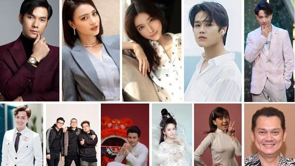 Từ trái qua, từ trên xuống: Diễn viên Nhan Phúc Vinh, diễn viên Ninh Dương Lan Ngọc, diễn viên Cao Thái Hà, ca sĩ Tăng Duy Tân, ca sĩ ST Sơn Thạch, ca sĩ Ngô Kiến Huy, nhóm nhạc DaLAB, nghệ sĩ Võ Minh Lâm, nghệ sĩ Bình Tinh, nghệ sĩ Hồng Trang và NSƯT Hữu Châu. (Ảnh do nghệ sĩ cung cấp)