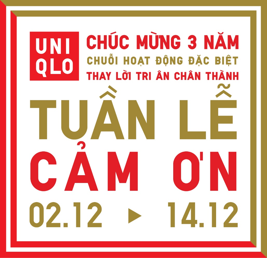 Xuất phát từ truyền thống, văn hóa tri ân Nhật Bản, trong ba ngày đầu tiên diễn ra Tuần Lễ Cảm Ơn, UNIQLO sẽ mang đến trải nghiệm đặc biệt với cà phê sáng Việt Nam cho 100 khách hàng đầu tiên mỗi ngày, từ ngày 2 – 4/12, tại cửa hàng UNIQLO Đồng Khởi (TP.HCM) và UNIQLO Vincom Phạm Ngọc Thạch (Hà Nội).