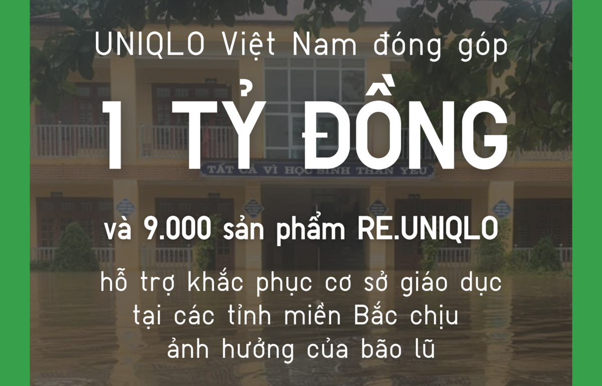 UNIQLO Việt Nam đóng góp 1 tỷ đồng và 9.000 trang phục RE.UNIQLO, hỗ trợ khắc phục tình trạng ảnh hưởng sau bão lũ tại các trường học thuộc các tỉnh miền Bắc.