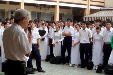 (VTC News) - Từ ngày 29/11, tấm gương công dân trẻ thành phố Lê Thanh Thúy sẽ được đưa vào hoạt động chào cờ như một chuyên đề ở trường THPT tại TP.HCM.Một buổi sinh hoạt của học sinh THPT.