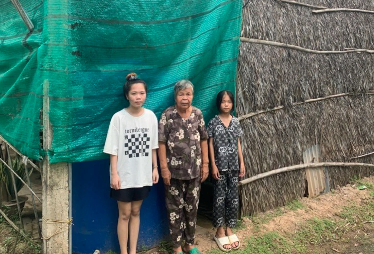 Thiếu tá Trần Mạnh Toàn, Đồn biên phòng Hàm Luông, tỉnh Bến Tre cho biết, gia đình bà Sàng là một trong những hộ nghèo nhất trong xã Bảo Thạnh. Bà hiện ở cùng vợ chồng con trai út và hai cháu gái. Vợ chồng cậu con trai út đi làm thuê thu nhập thấp, lại phải nuôi mẹ già, con nhỏ.