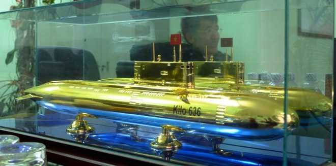 Hình ảnh ông Hòa in vào mô hình chiêc tàu ngầm trên bàn làm việc của ông.