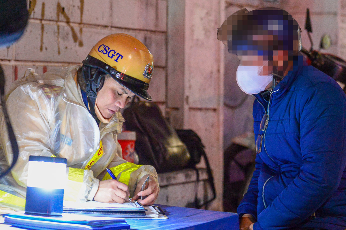 Lúc 23h12, Tổ công tác tiếp tục dừng xe, kiểm tra với tài xế T. điều khiển xe máy mang BKS 34B2 - 43XX. Qua kiểm tra nồng độ cồn tài xế T., kết quả vi phạm 0,079mg/l khí thở.