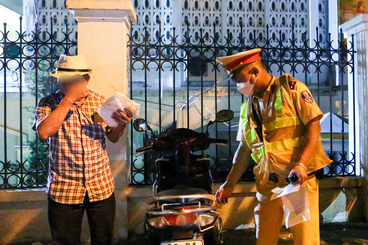 Lúc 22h26, phát hiện xe máy mang BKS 29 B1 – 841.xx chạy loạng choạng, tài xế (ông N.T.B., trú tại Ba Đình, Hà Nội) có biểu hiện không tỉnh táo, tổ công tác ra hiệu lệnh dừng xe và yêu cầu đo nồng độ cồn.