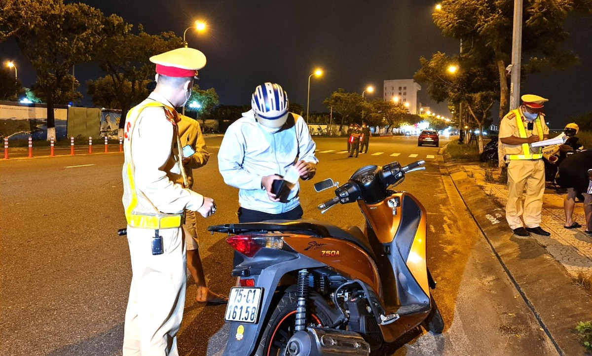 Lực lượng CSGT Công an TP Đà Nẵng kiểm tra nồng độ cồn với người điều khiển xe máy.