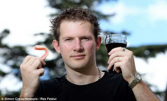 Anh chàng này uống hết một thùng nước ngọt có ga mỗi ngày, và đến 25 tuổi đã "bay" cả hàm răng.