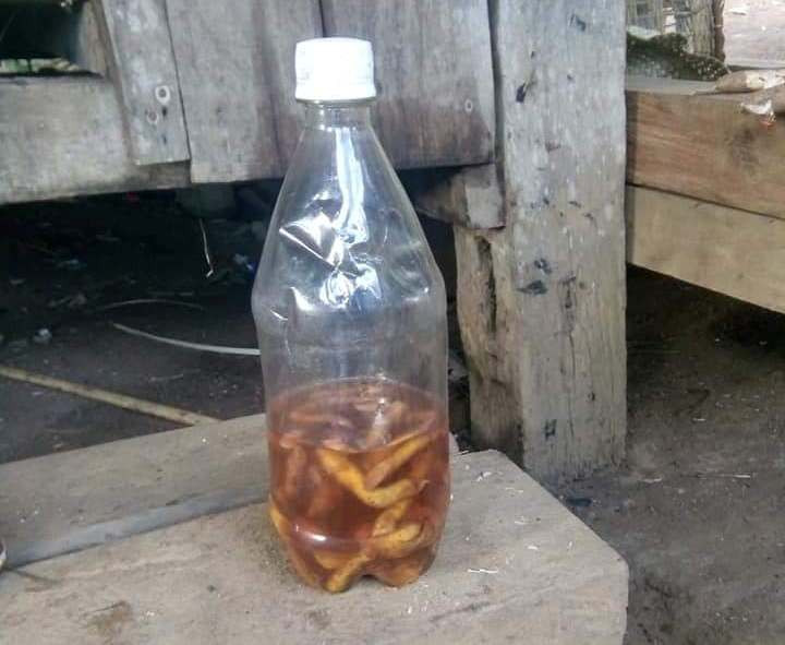 Chai rượu chứa rễ cây lạ mà hai cậu cháu ở Quảng Nam đã uống và thiệt mạng. (Ảnh: T.A)
