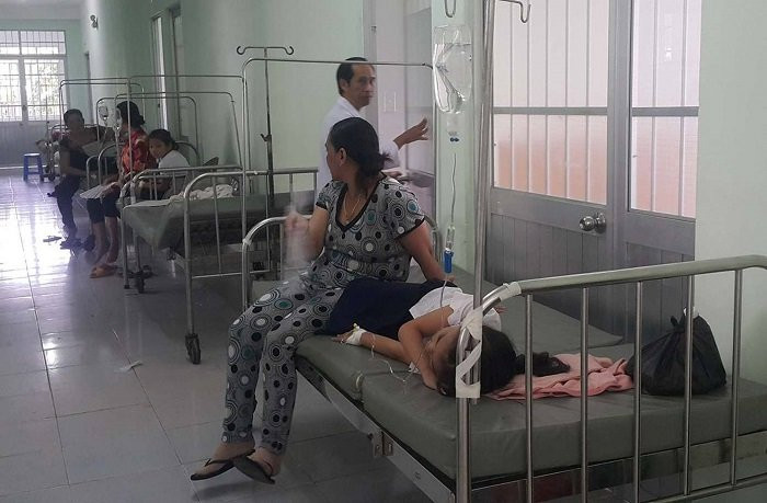 Khoảng 30 phút sau, hàng loạt em có triệu chứng đau bụng, buồn nôn, tiêu chảy… phải đưa đến Trung tâm Y tế thị xã Ngã Bảy cấp cứu.
