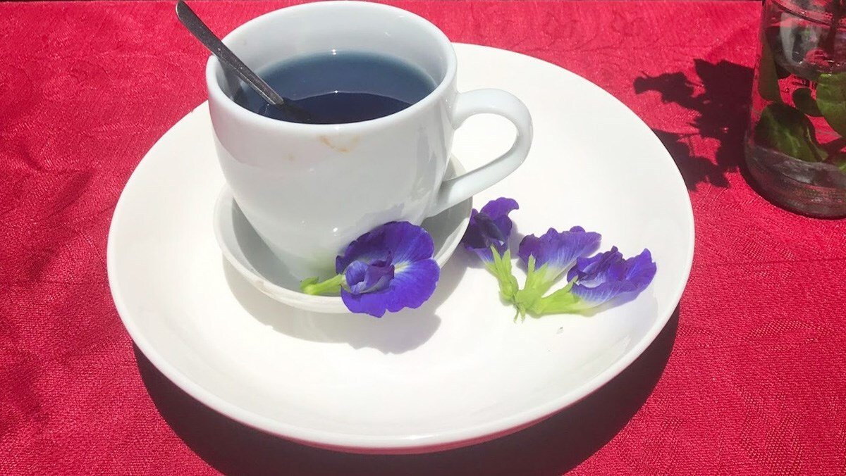 Khi làm trà hoa đậu biếc, người ta đem phơi cho đến khi hoa khô lại, rồi ủ hoa khô cùng nước sôi. Sau khi pha nước trà có thể chuyển thành màu tím, đỏ hoặc xanh lá cây phụ thuộc vào độ pH trong trà.