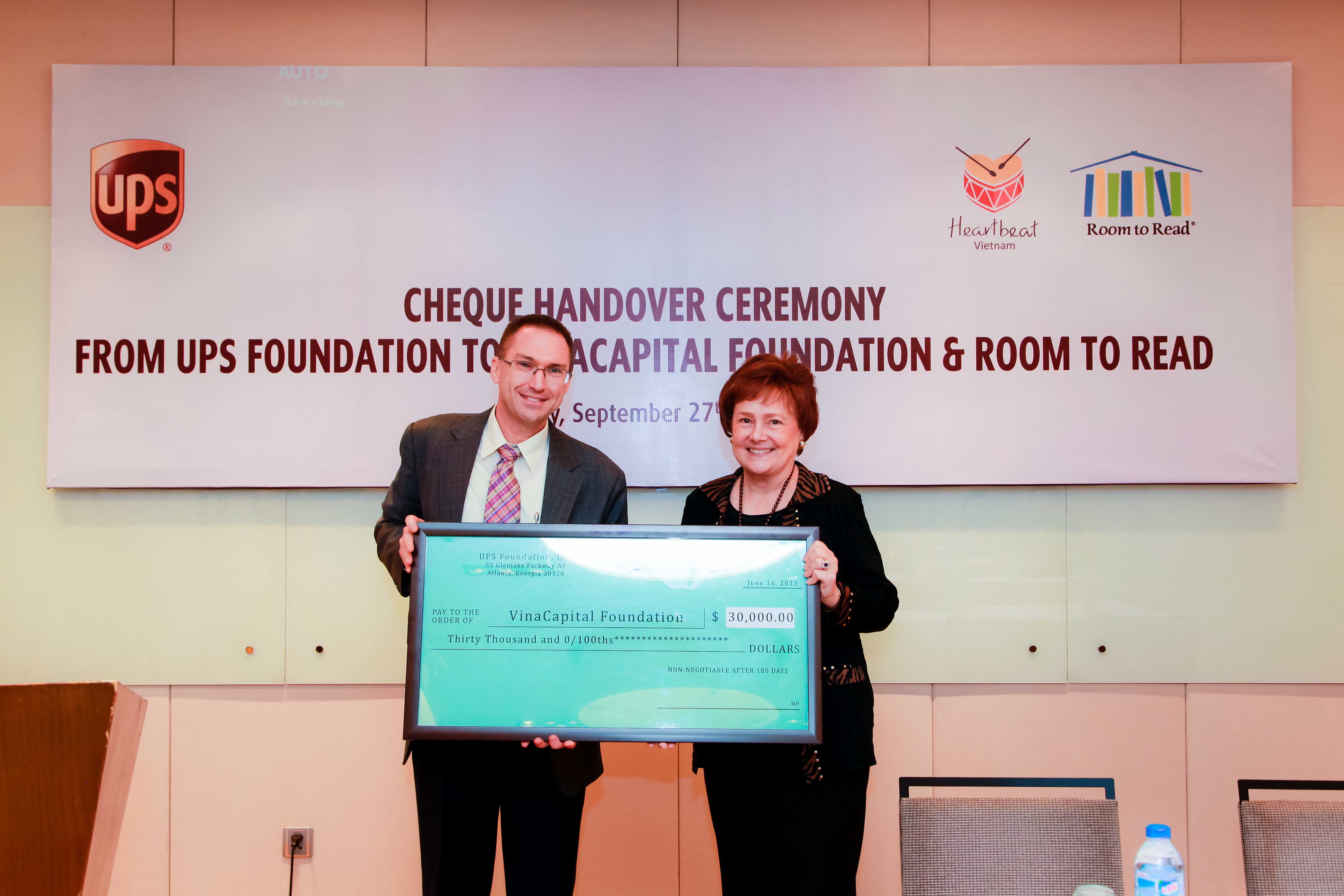 Bên cạnh đó, UPS Foundation cũng đã trao tặng khoản tiền tài trợ US$26,750 cho tổ chức Room To Read (RTR), một tổ chức nhằm đem đến cơ hội học tập cho trẻ em nghèo. Số tiền này sẽ được sử dụng để cung cấp ba thư viện sách bao gồm sách thiếu nhi, tài liệu dạy học và cung cấp môi trường học tập với văn hoá đọc ngày một lớn mạnh hơn.